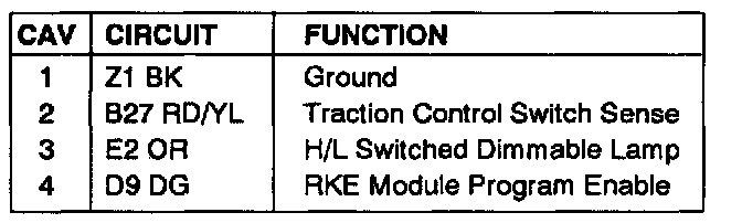 Traction Control Switch Connector Pin Out: