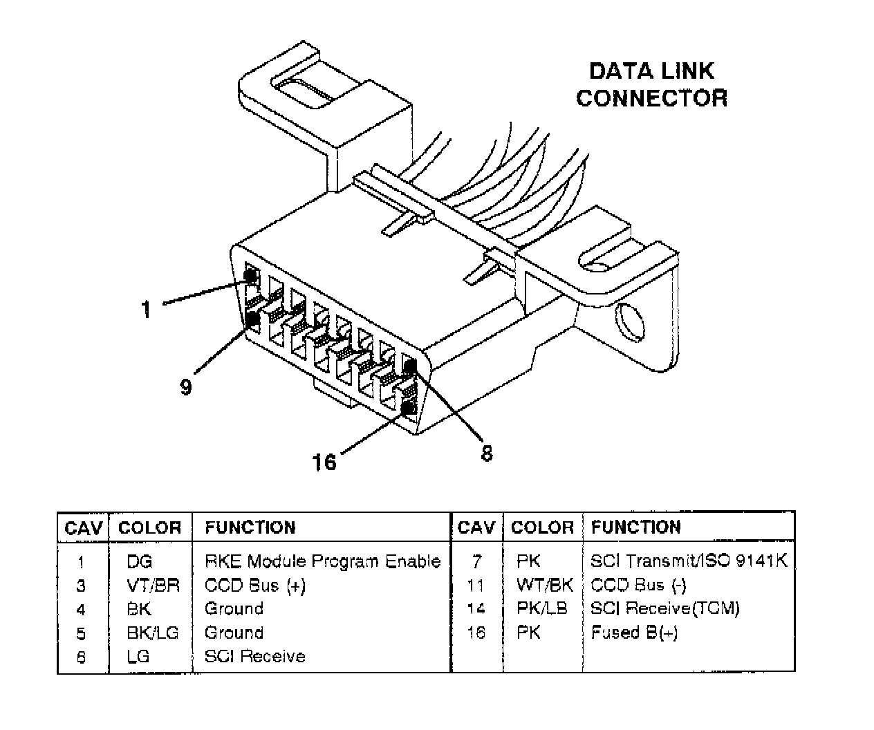 3. Ground pin 1 of the Data Link Connector. This is the programming line for the Remote Keyless Entry Module. The door locks will lock and unlock to indicate the receiver is ready to receive transmitter code. The trunk solenoid will not cycle at this time.