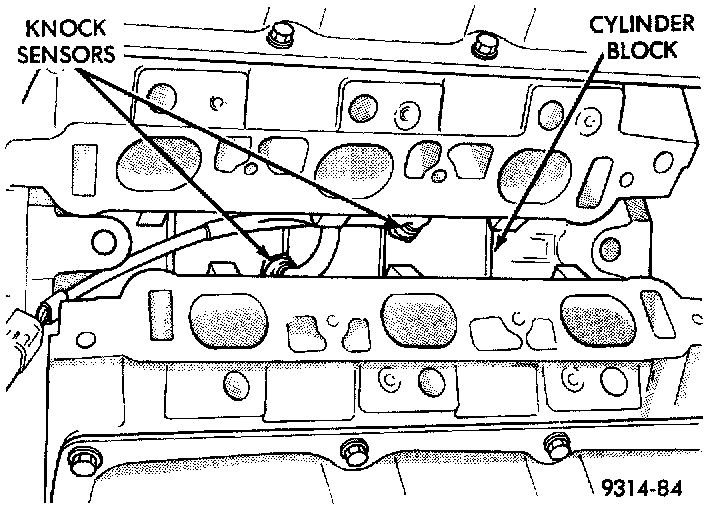 NOTE: This engine uses two knock sensors. The sensors thread into the cylinder block, directly below the intake manifold.