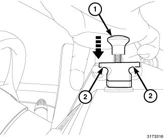 3. Set the navigation pod remover tool MLR-10313 or equivalent (1) on the navigation port (2) on the instrument panel.