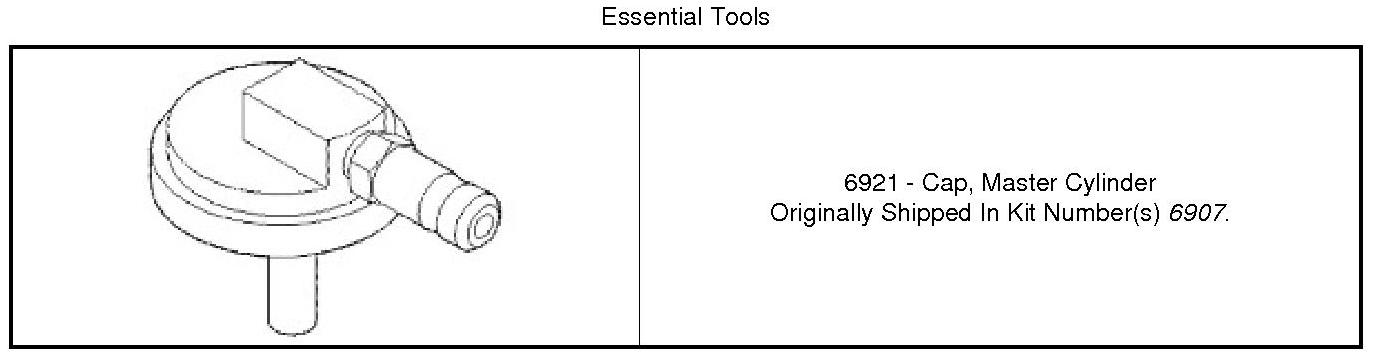 1. Attach Master Cylinder Cap (6921) (2) in place of the filler cap on the master cylinder reservoir (3).