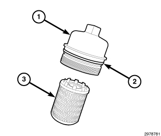 15. Install the new oil filter (3) into the oil filter cap (1).