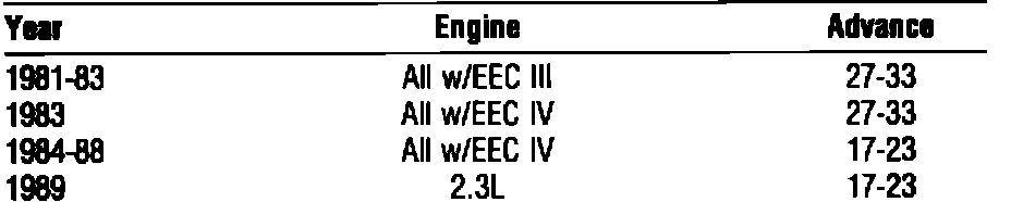 Home >> Ford >> 1985 >> Ranger 2WD V6-171 2.8L >> Repair and Diagnosis >> Specifications >> Electrical Specifications >> Ignition System >> Ignition Timing >> Computer Timing Advance