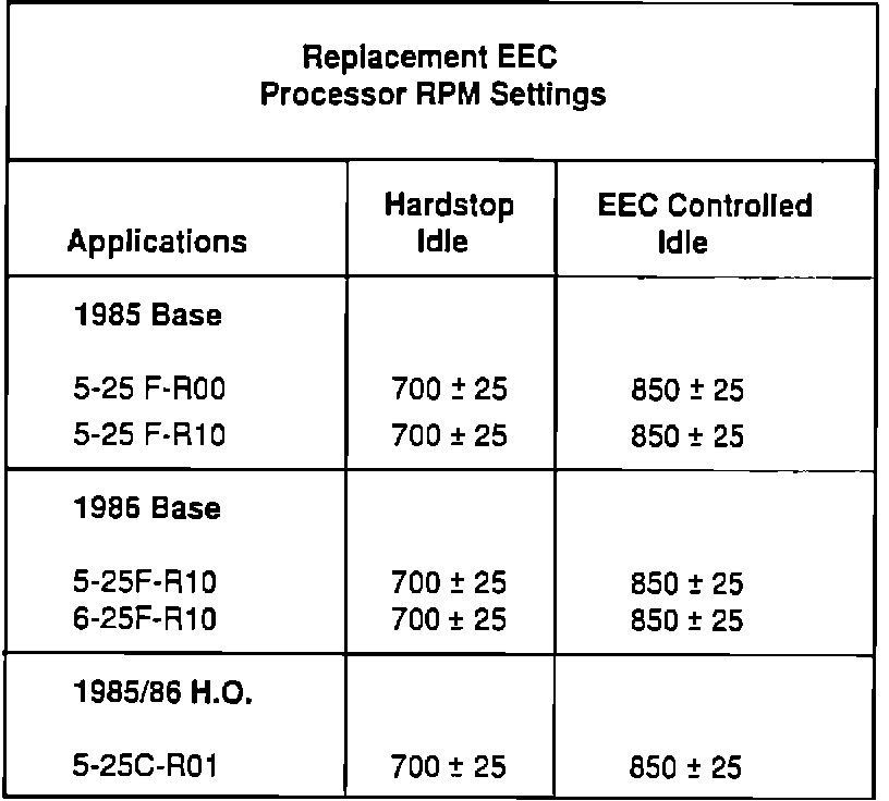Home >> Ford >> 1985 >> Tempo L4-140 2.3L HSC >> Repair and Diagnosis >> Powertrain Management >> Computers and Control Systems >> Engine Control Module >> Technical Service Bulletins >> Recalls >> Emissions >> Recall - Part III Fuel Injection/Emissions Modification >> Throttle Stop Setting Procedure