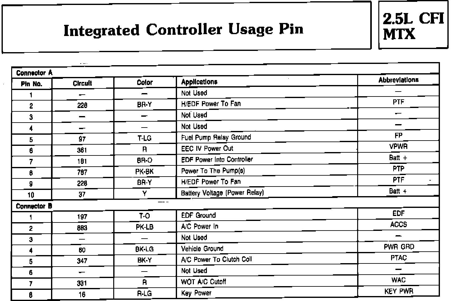Pin Usage - Integrated Controller W/CFI & MTX:
