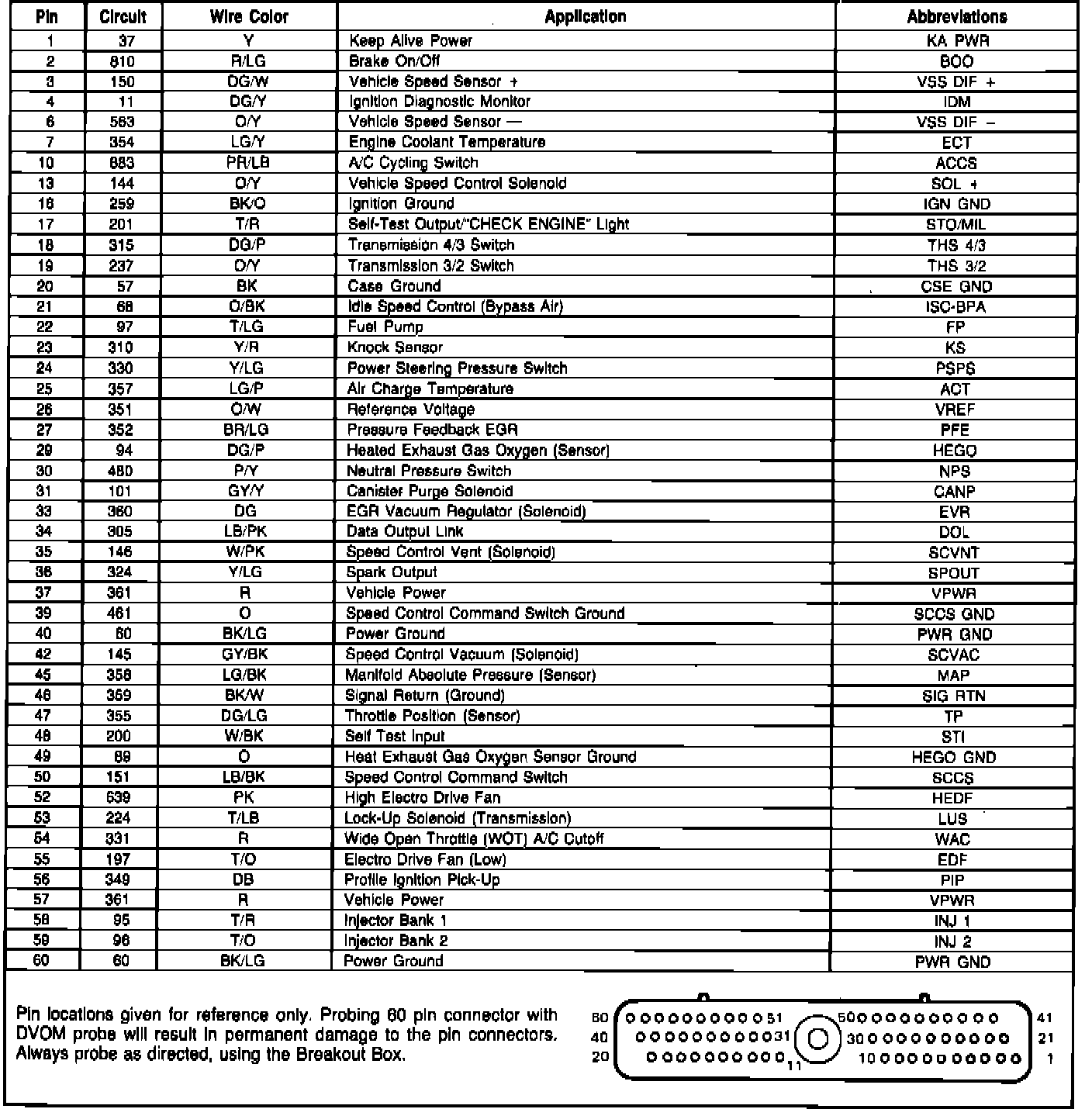 Pin Usage - EEC-IV Module Connector: