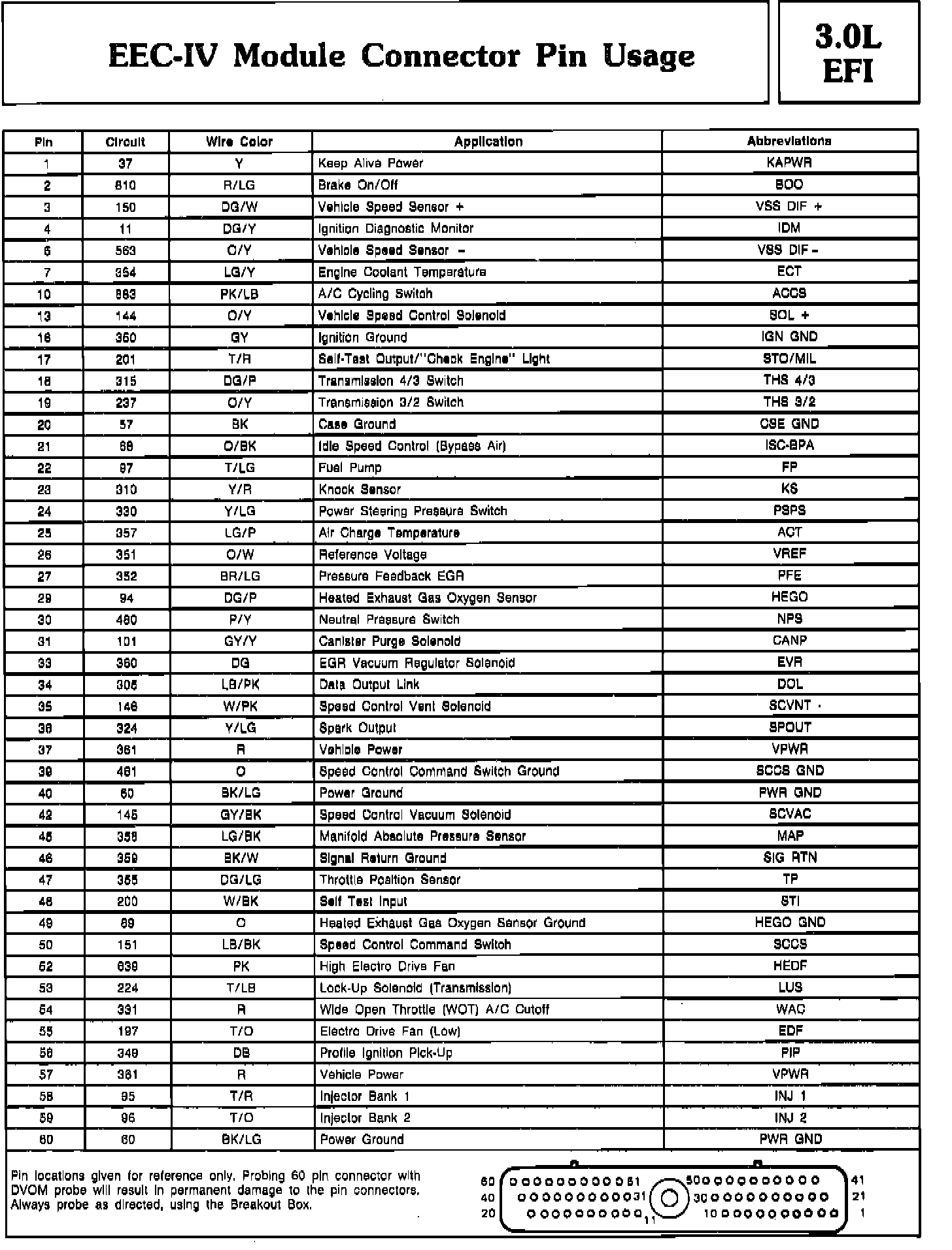 Pin Usage - EEC-IV Module: