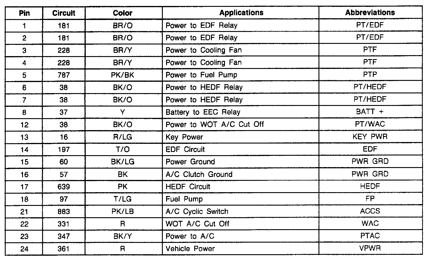 Integrated Relay Controller Module (IRCM) Pin Usage:
