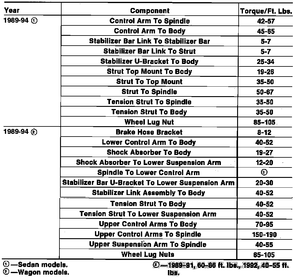 Tightening Specifications (Front Suspension):