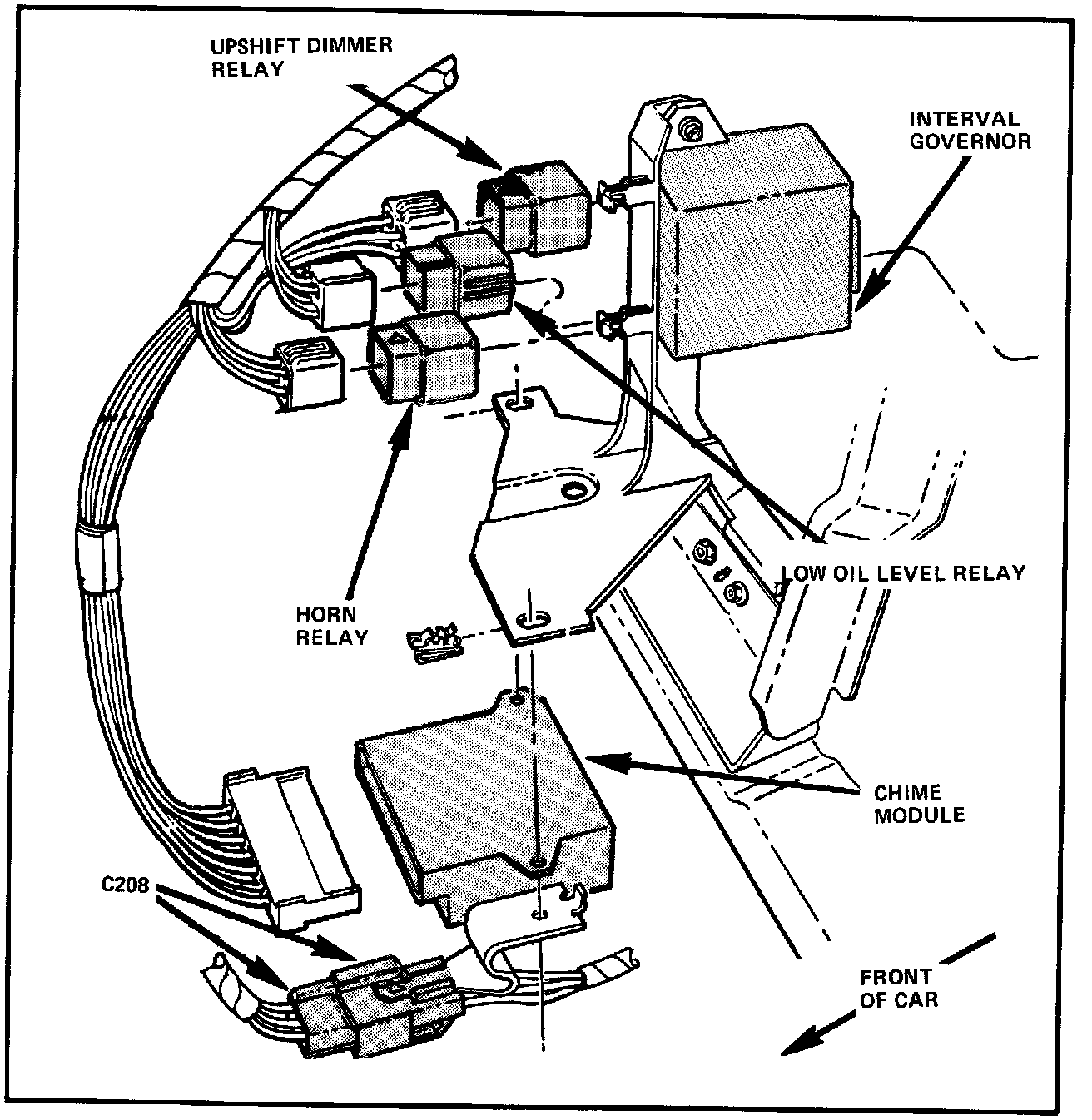 The Windshield Wiper/Washer Interval Governor is located behind the center of the Instrument Panel, on the Instrument Panel brace.