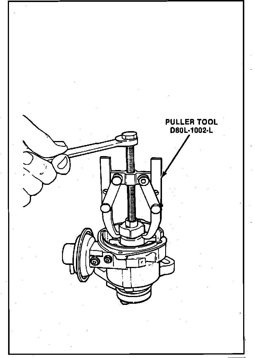 3. Remove signal rotor retaining screw, then using Puller D80L-1002-L or equivalent, remove the signal rotor and pin from the upper shaft. Note the direction of the arrow stamped into the rotor.