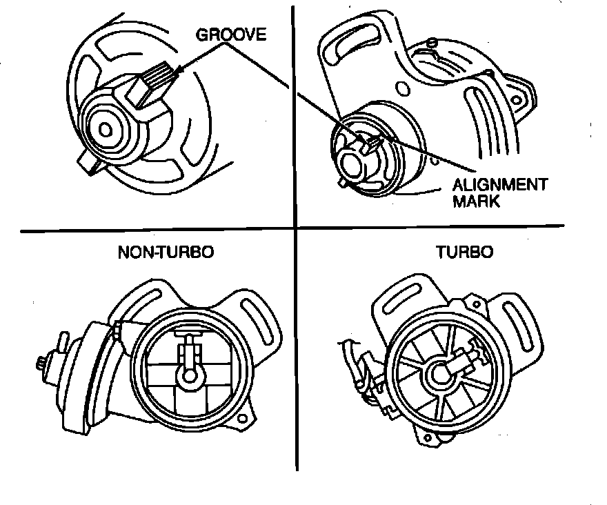 8. Align the groove in the drive dog with the alignment mark on the distributor housing.