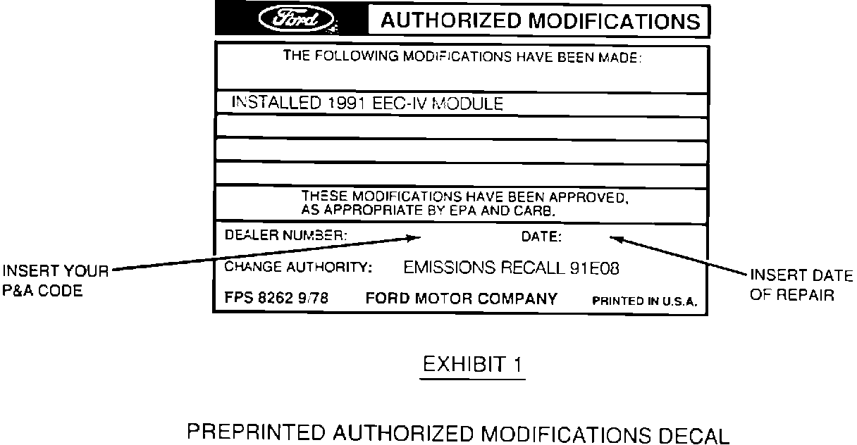1. Remove and replace the existing EEC module, with the new EEC module Part Number F12Z-12A650-BB.