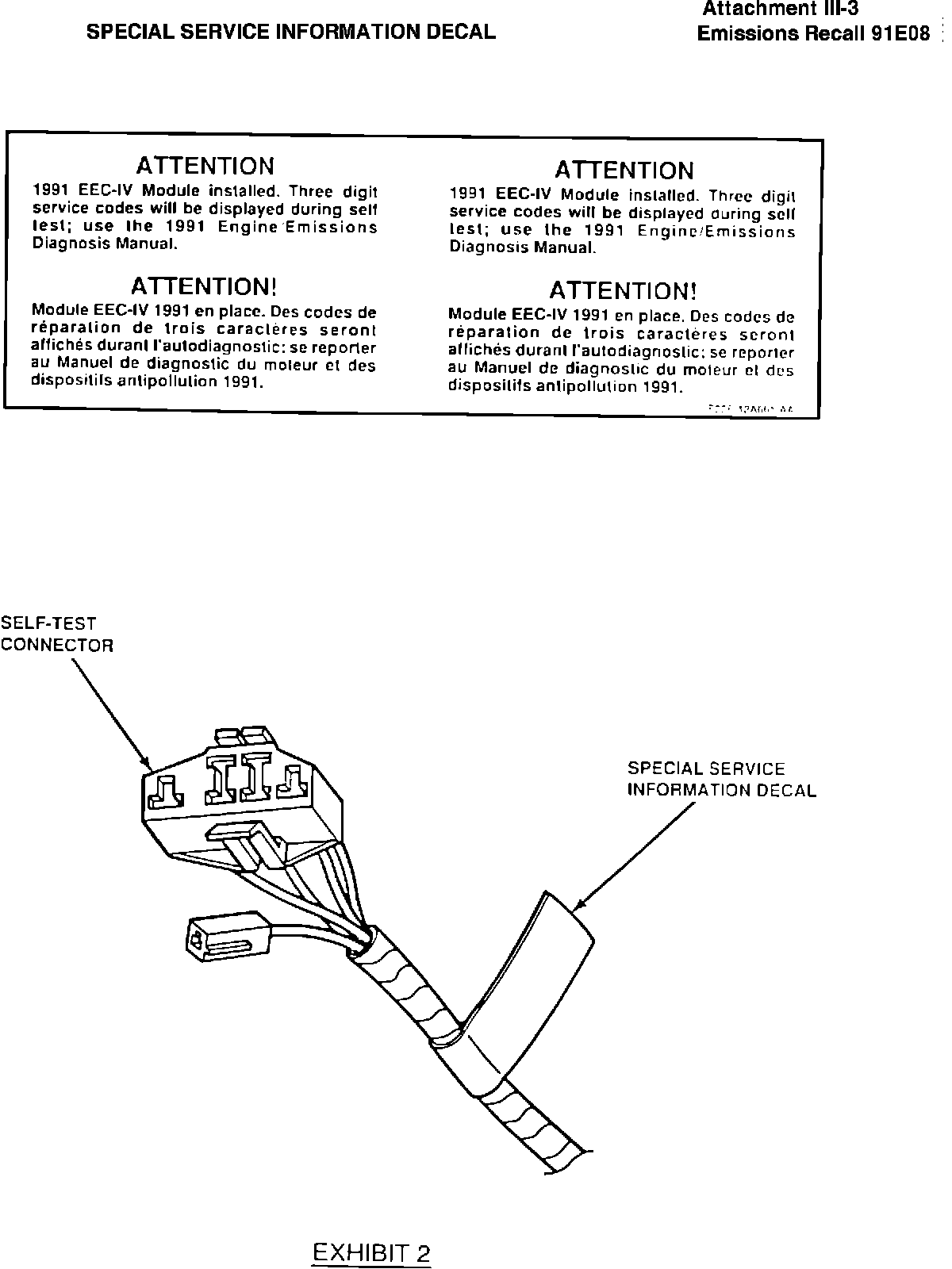 ^ Refer to Exhibit 2. Attach the Special Service Information Decal to the Self-Test Connector as shown.