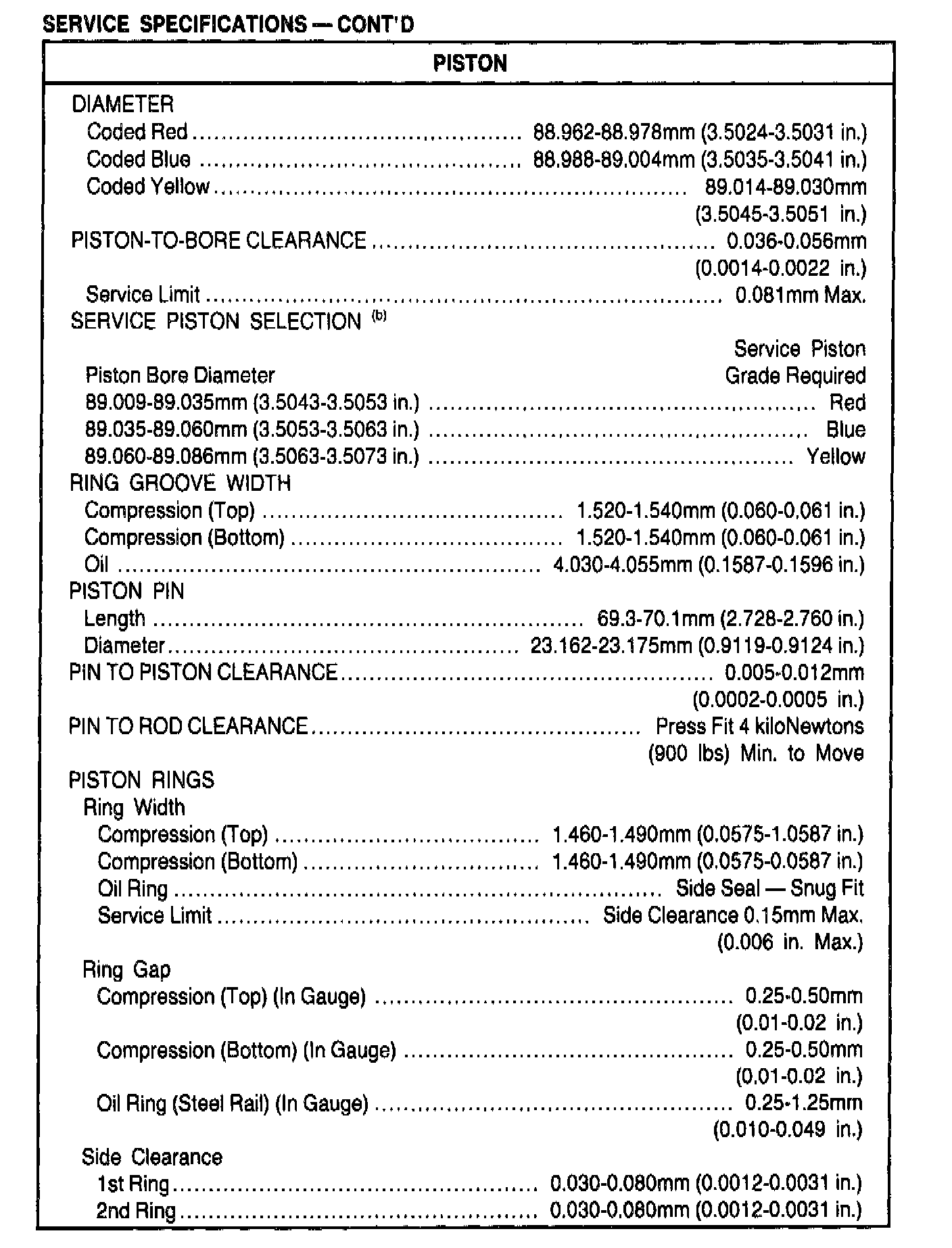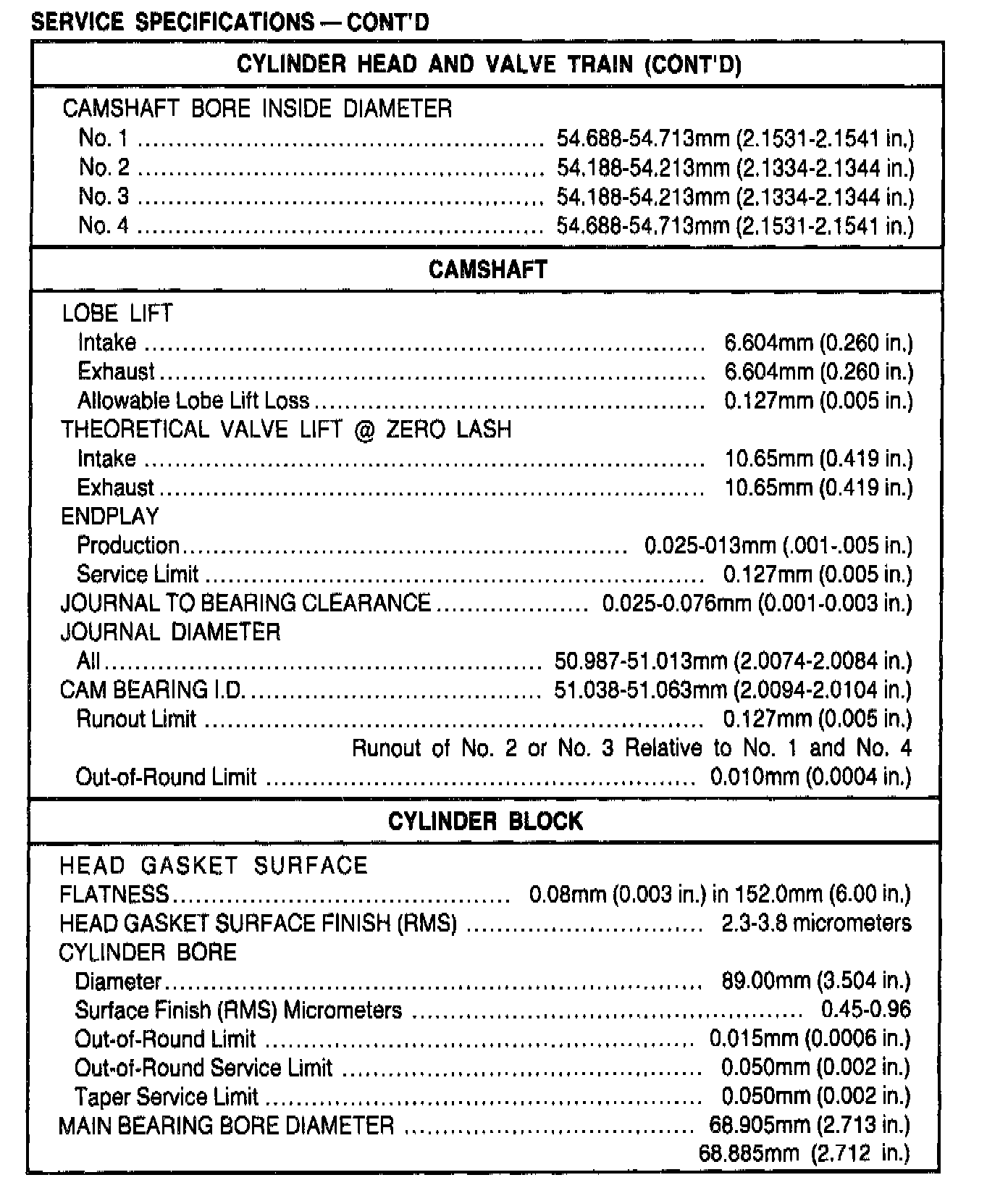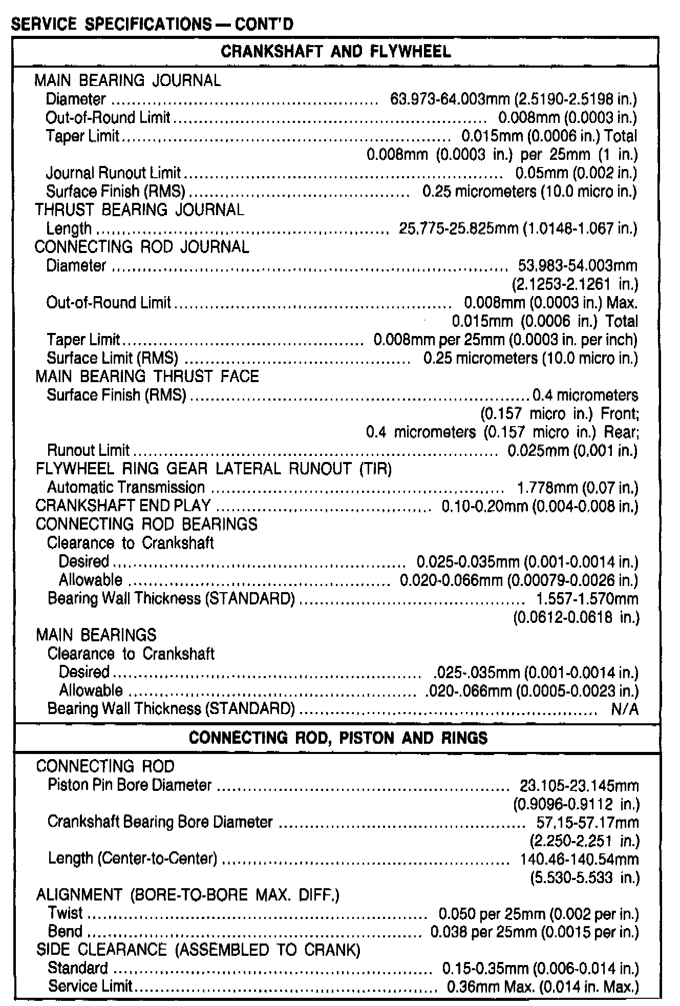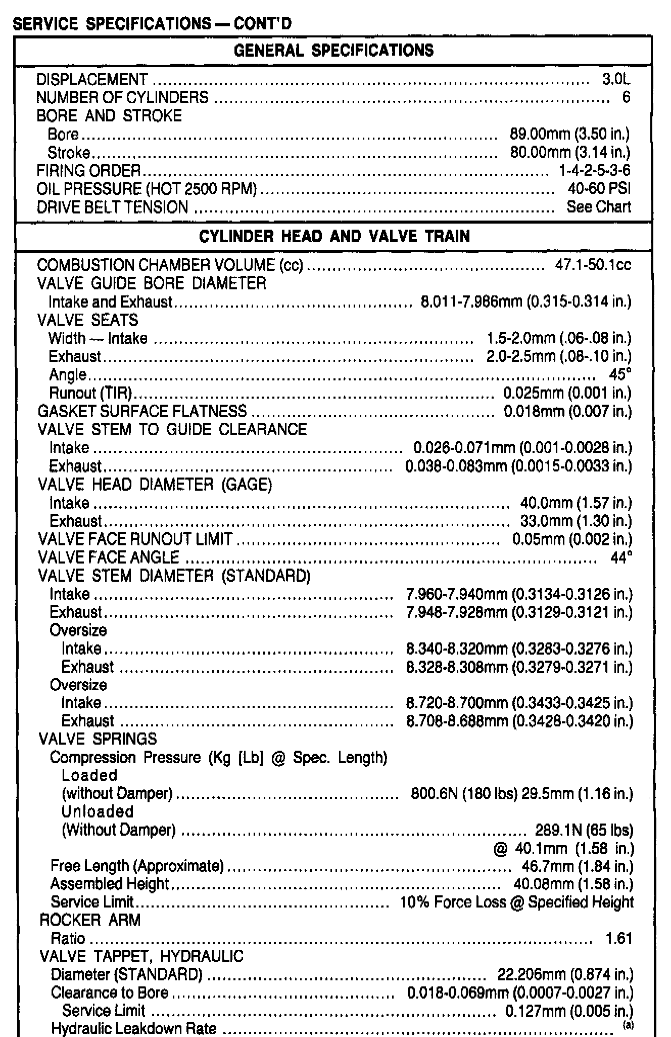 General Engine Specifications