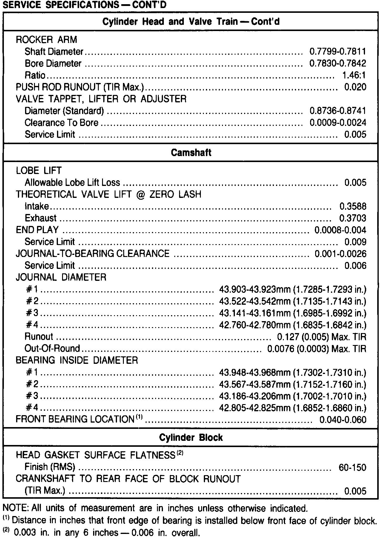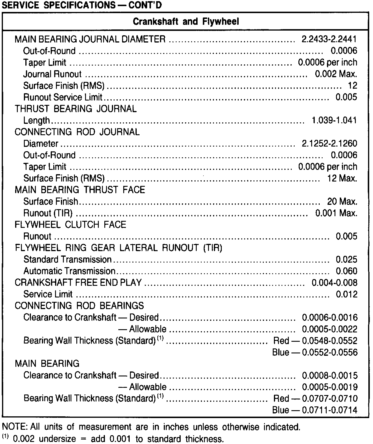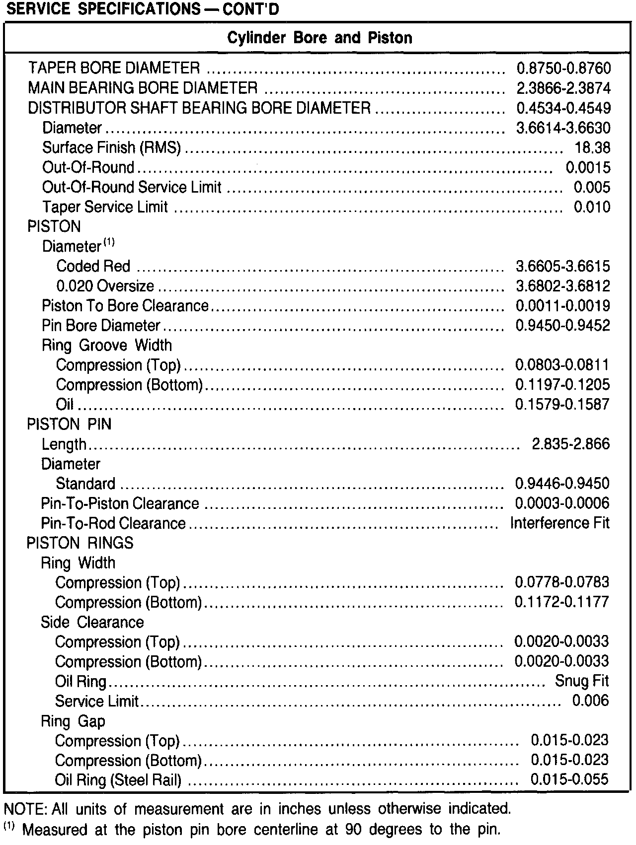 General Engine Specifications