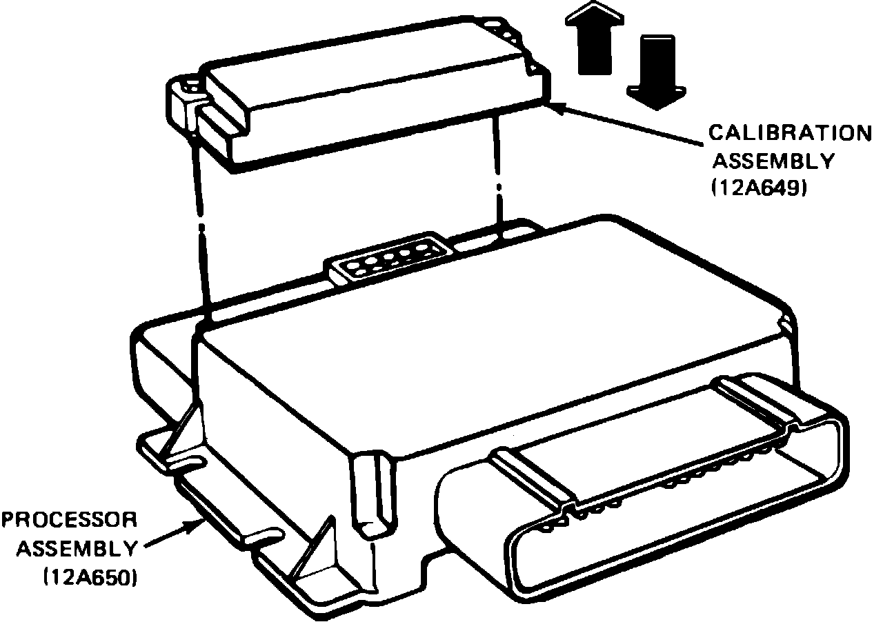 The ECA is the brain of the EEC-IV system and is comprised of a processor and calibration assembly, Fig. 6. The processor receives input signals from the various sensors. The information obtained is used by the processor to activate engine control systems to obtain optimum emission control and engine performance
