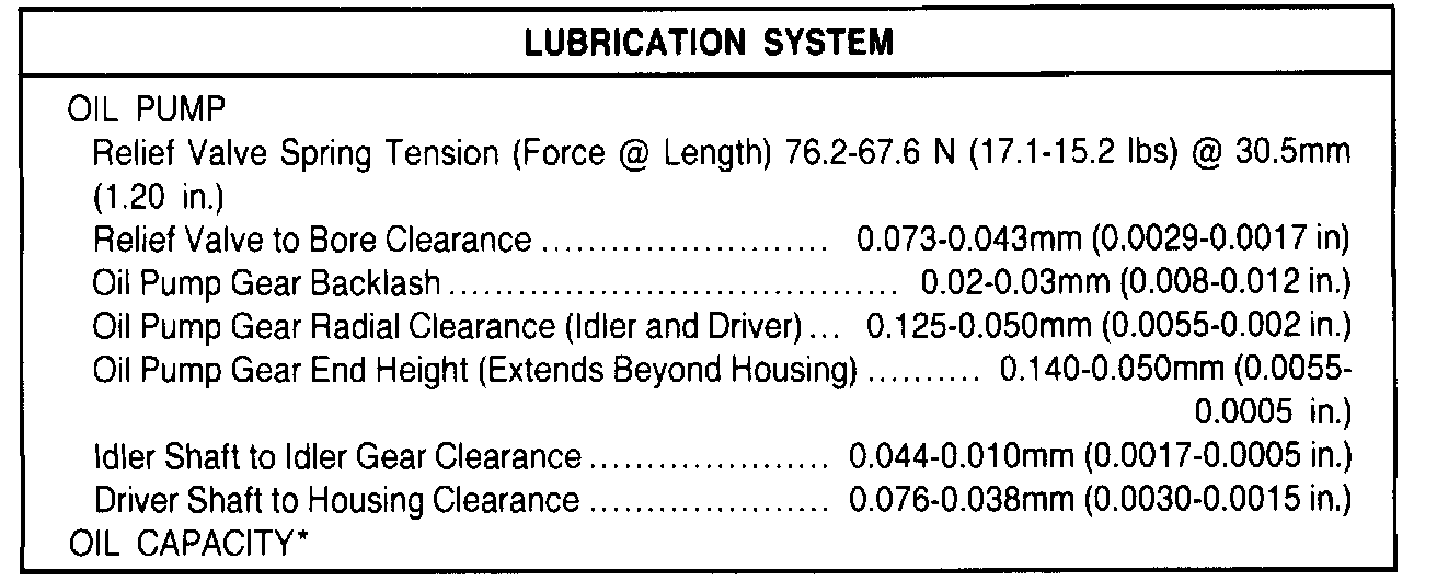 (1) 20-200 seconds to leakdown 3.18 (0.125 in) with 225 Newtons (50 pounds) load and tappet filled with leakdown fluid.