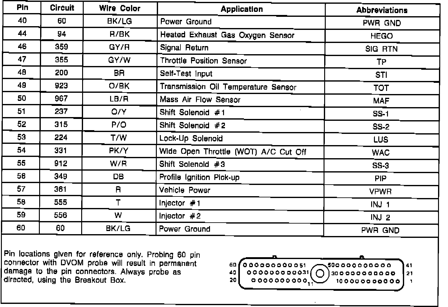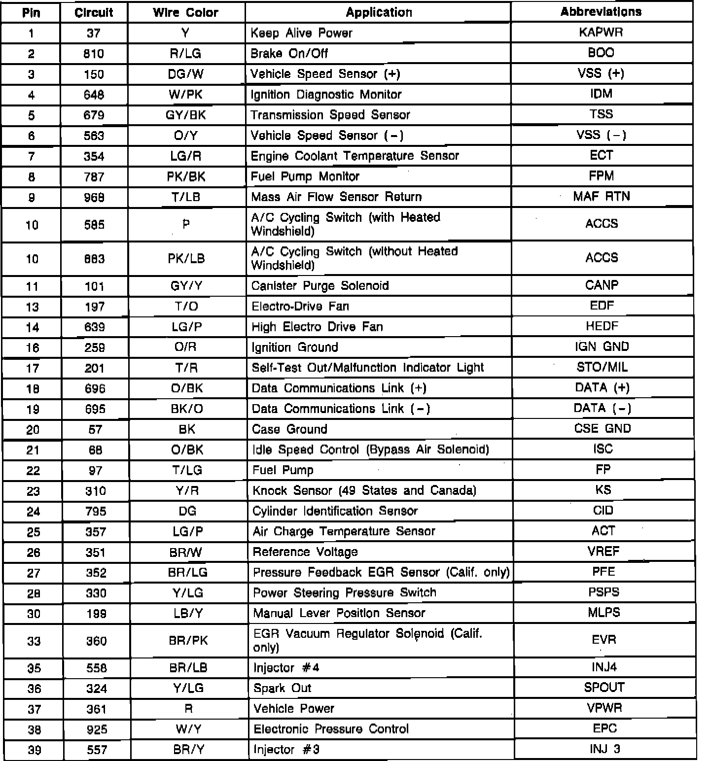 Electronic Control Assembly (ECA) Connector Pinout:
