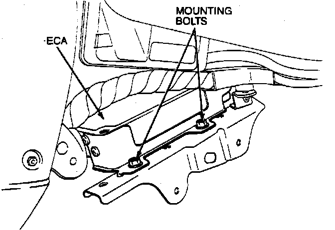 3. Remove mounting bolts from Electronic Control Assembly (ECA) floorpan bracket.