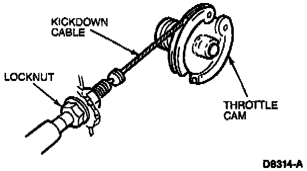 6. Turn the locknuts away from the throttle cam until the specified line pressure is reached.