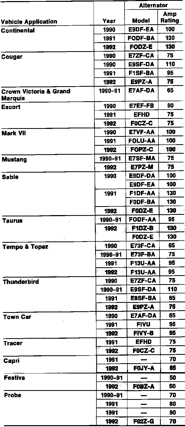 Alternator Specifications: