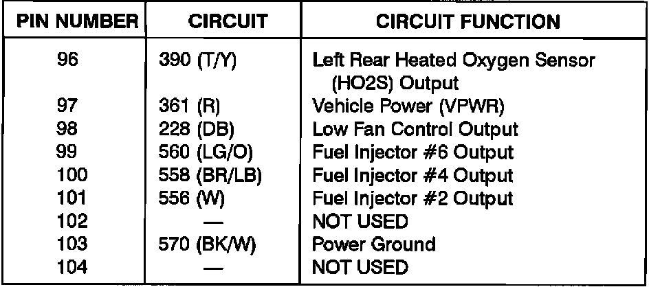Powertrain Control Module (PCM) Pinout Chart: