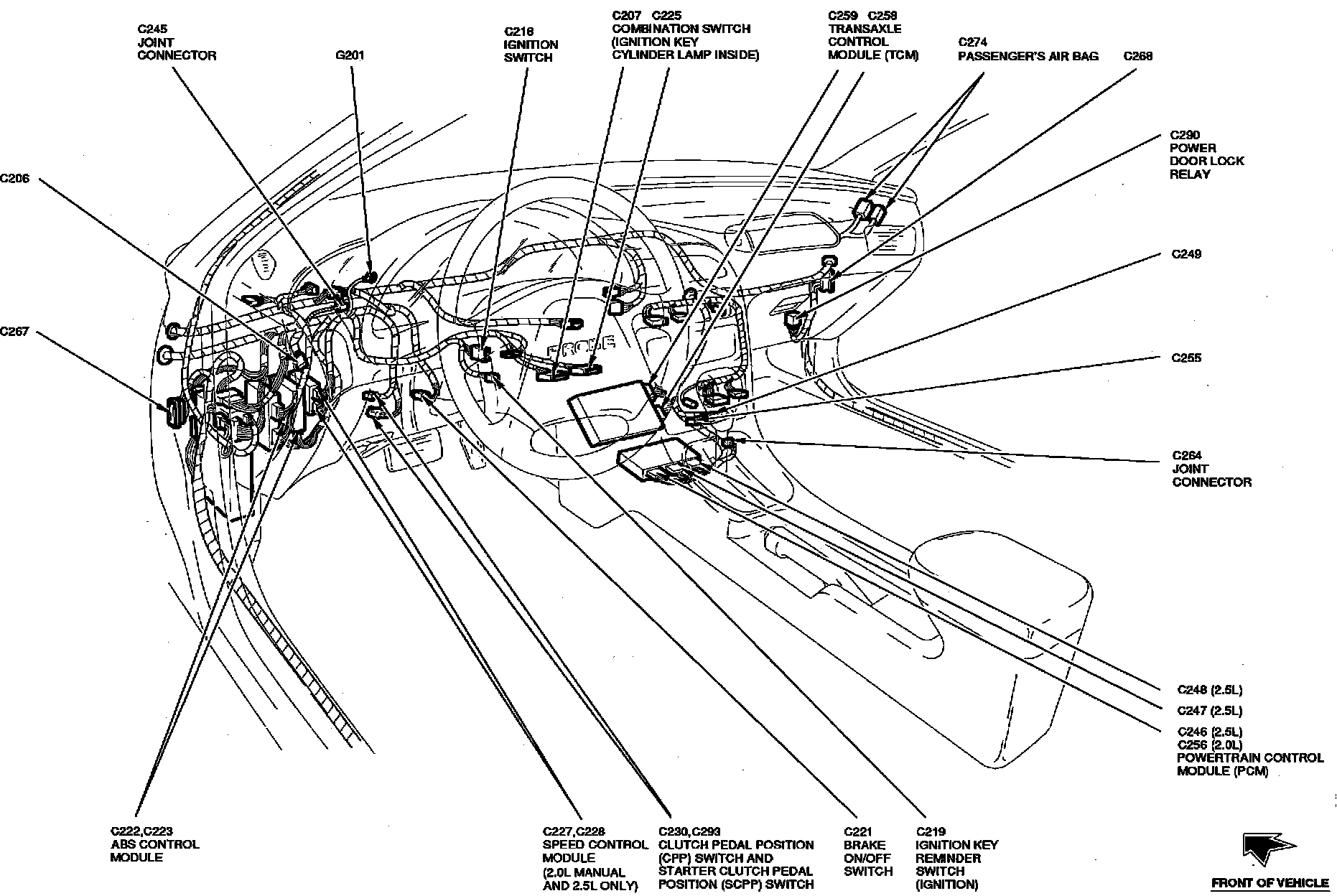 The Speed Control Module is located behind I/P, left of steering column.