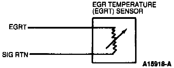 Description: The EGR Temperature (EGRT) sensor resistance varies with temperature. It is located downstream of the EGR valve and its resistance decreases as EGR flow increases. The PCM uses the EGRT sensor input as an indication that the EGR system in functioning properly.