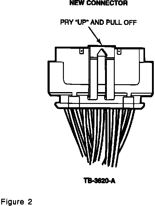 ^ The revised style connector has a beam (not split) that must be pried "up", and then pulled off, Figure 2.