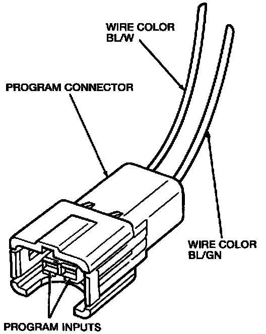 NOTE: Do not disconnect any electrical connectors on the electronic door lock control processor. The illustration shows the program connector and can be identified by the wire colors, and is not plugged into any harness or component.