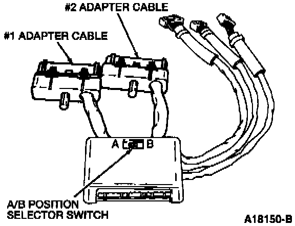 NOTE: The adapter also has an A/B position selector switch. Make sure that the switch is in the correct position for each test step, as specified in the Circuit Data Sheets for EEC Pinpoint Tests Relay Output Check (ROC), Solenoid Controlled by Ground (SCG), and 4EAT Pinpoint Test Solenoid Controlled by Power (SCP). If no switch position is given, then the switch can be in either position.