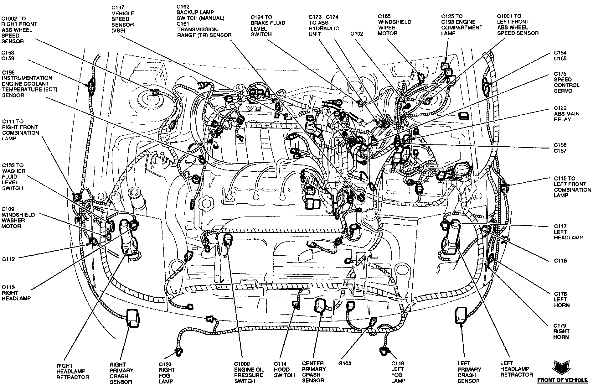 The Transmission Range Sensor is located at the top front of transaxle.
