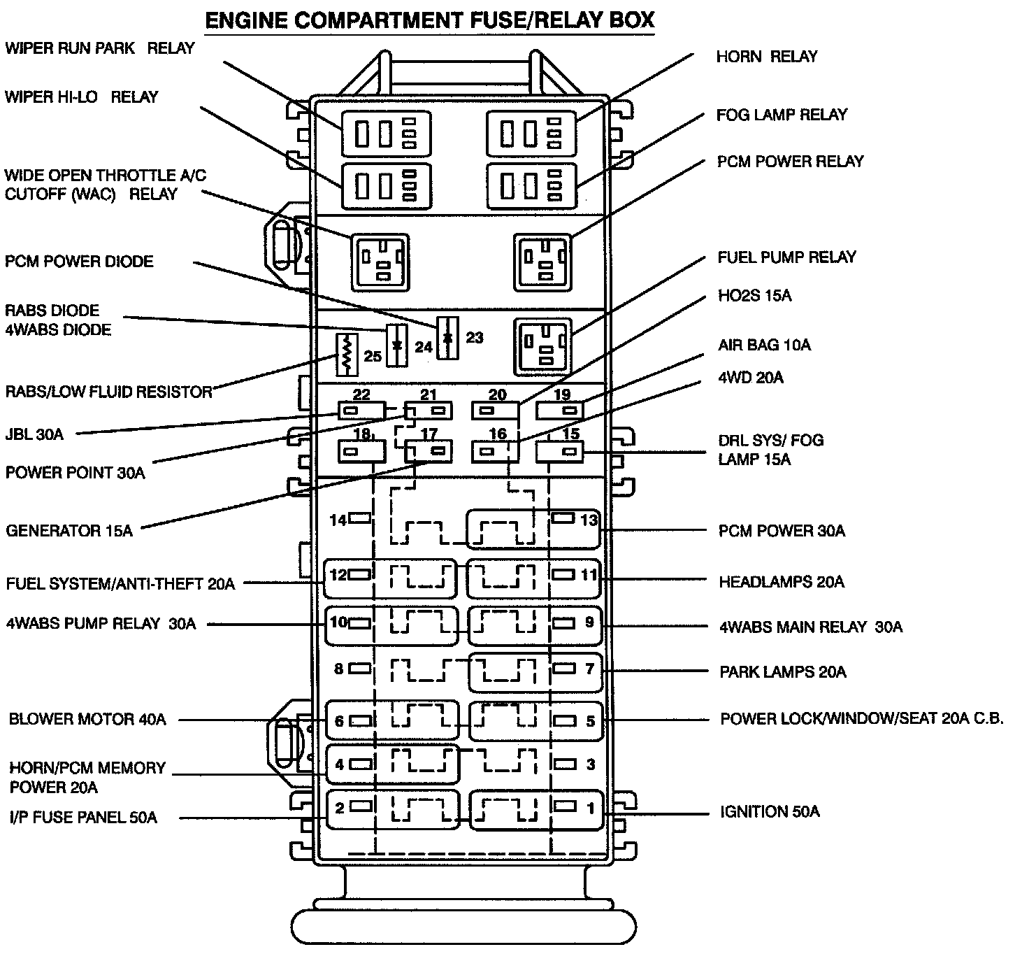 The PCM Power Relay is located in the engine compartment fuse/relay box.