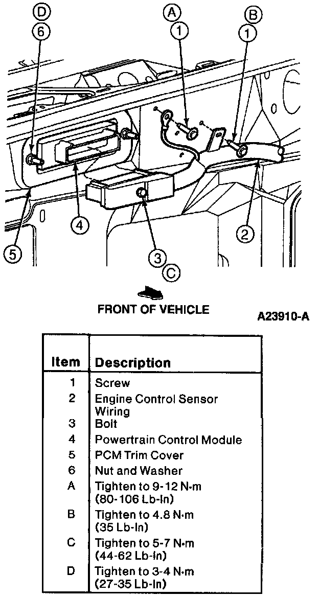 The Powertrain Control Module is located at the RH rear of the engine compartment, through safety wall.