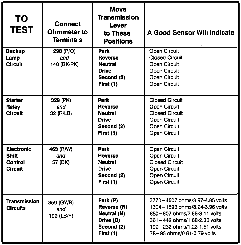 Transmission Range Sensor - Component Testing Procedure: