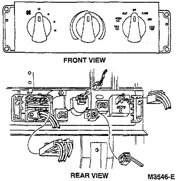 3. Remove the four Torx head screws retaining the control head. Pull the control head away from the instrument panel into a position which provides access to the rear connectors.