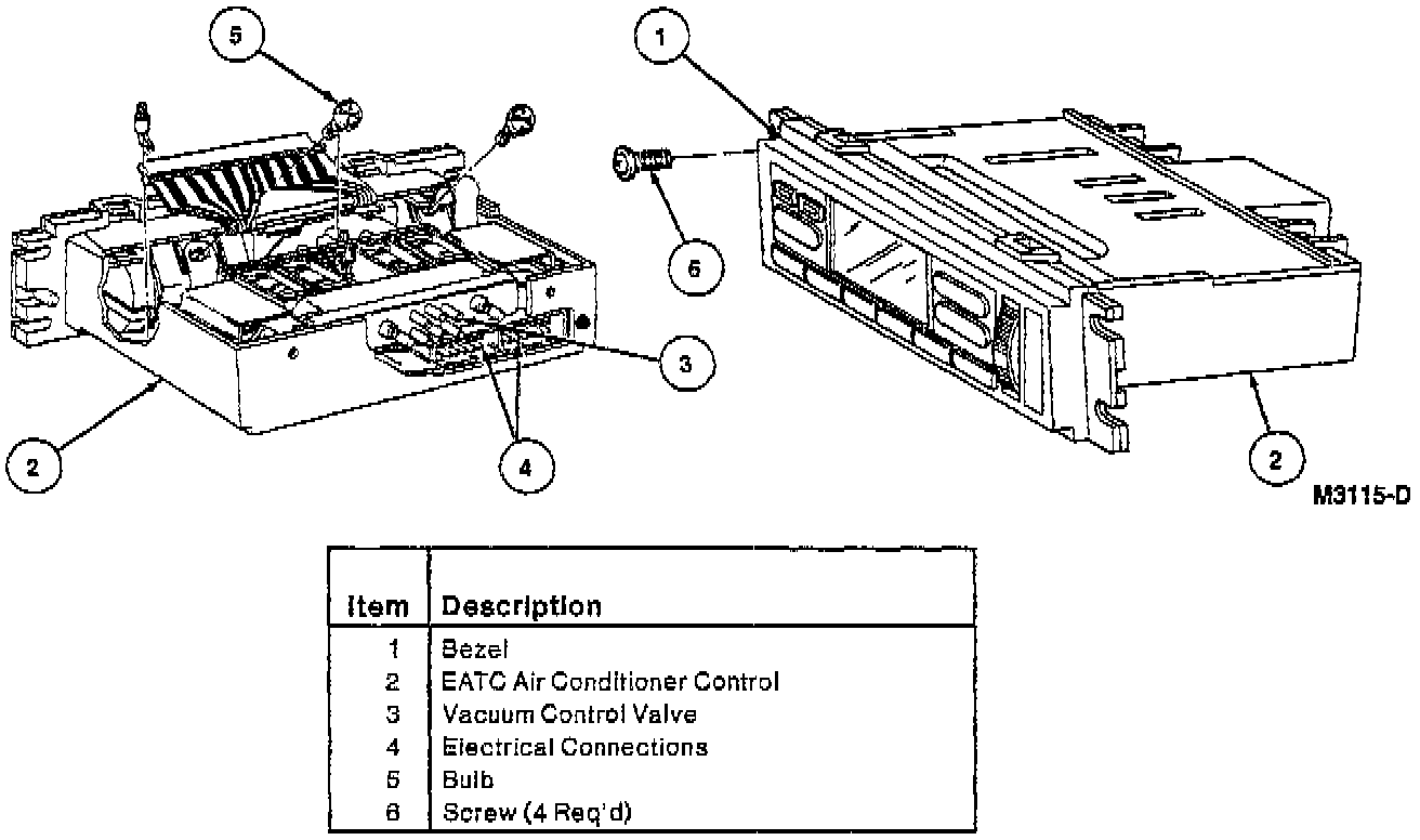 Home >> Ford >> 1995 >> Taurus V6-232 3.8L >> Repair and Diagnosis >> Heating and Air Conditioning >> Control Module HVAC >> Service and Repair