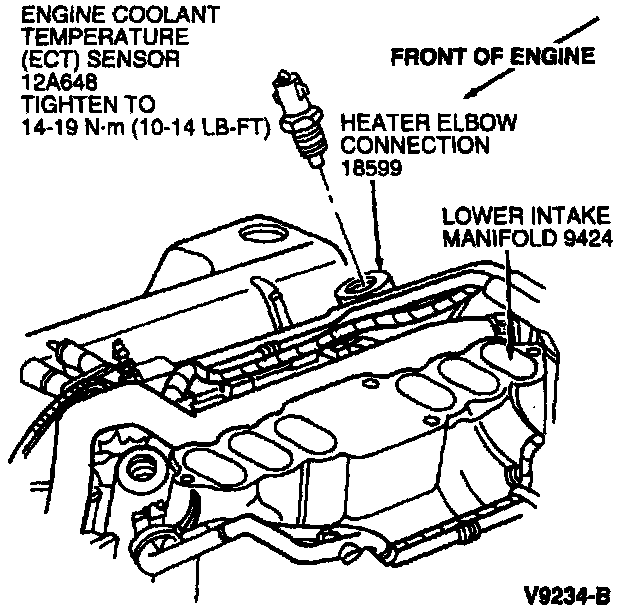 1. Install ECT sensor, tighten to 14-19 Nm (10-14 ft lb).