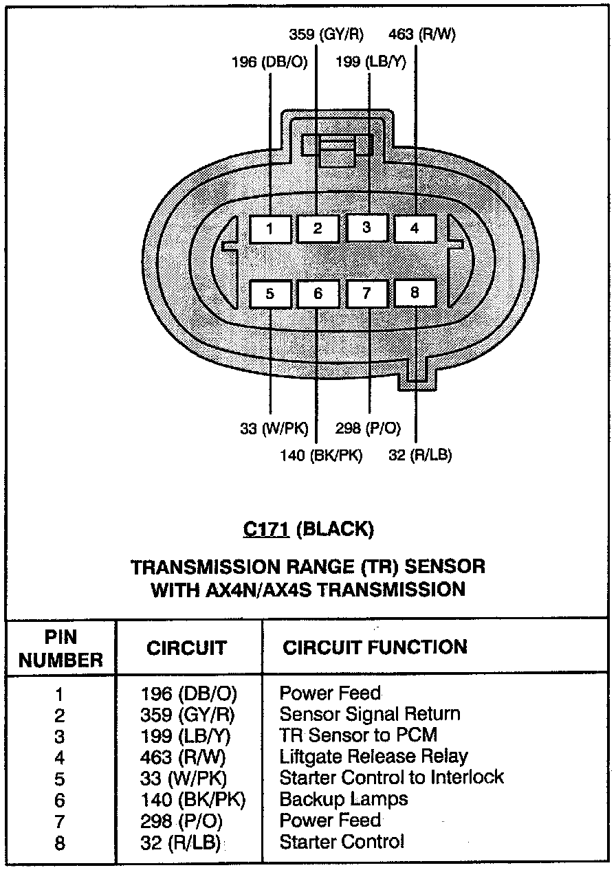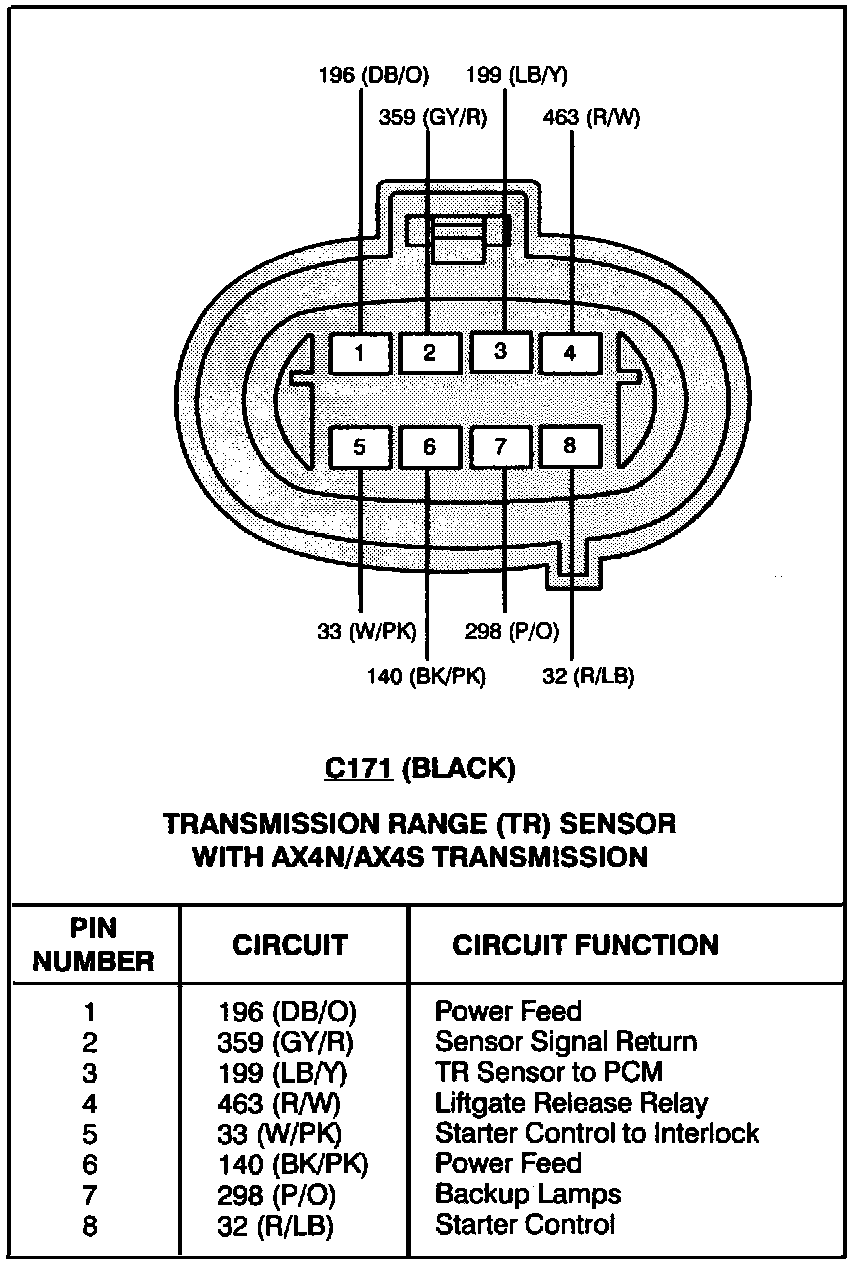 Transmission Range Sensor (With AX4N/AX4S Transmission):