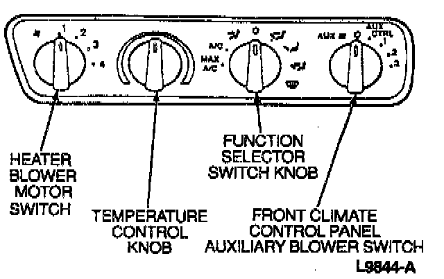 The front auxiliary heater blower motor switch is located in the instrument panel center finish trim panel.