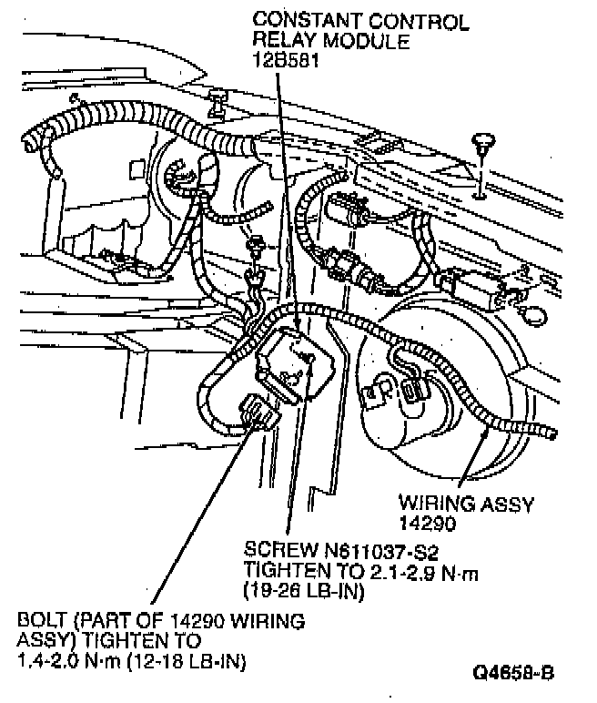 5. Connect electrical connector to constant control relay module and tighten screw to 1.4-2.0 Nm (12-18 inch lbs.).