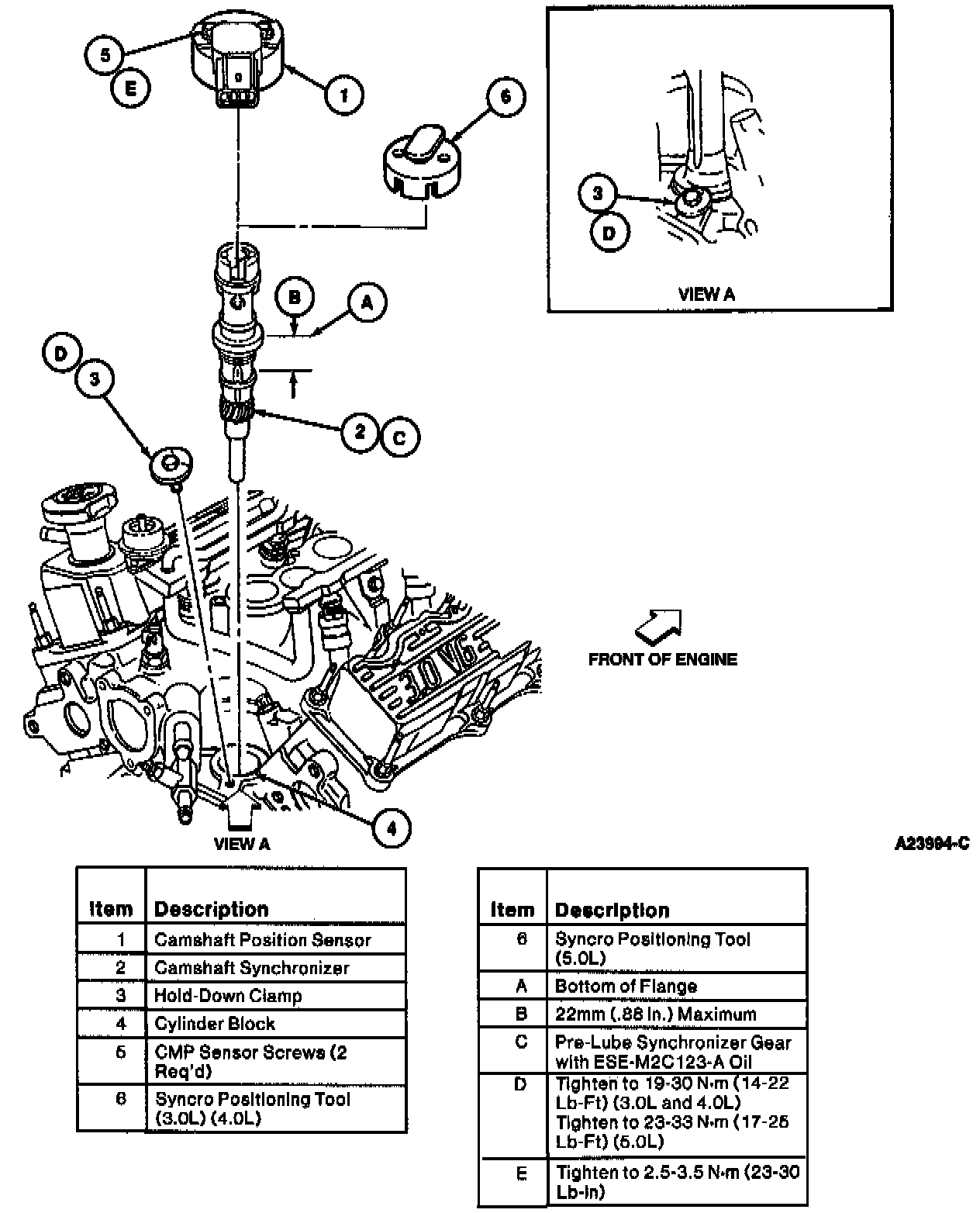CAUTION: Syncro Positioning Tool T95T-12200-A must be obtained prior to installation of the replacement synchronizer assembly. Failure to follow this procedure will result in the fuel system being out of time with the engine, possibly causing engine damage.