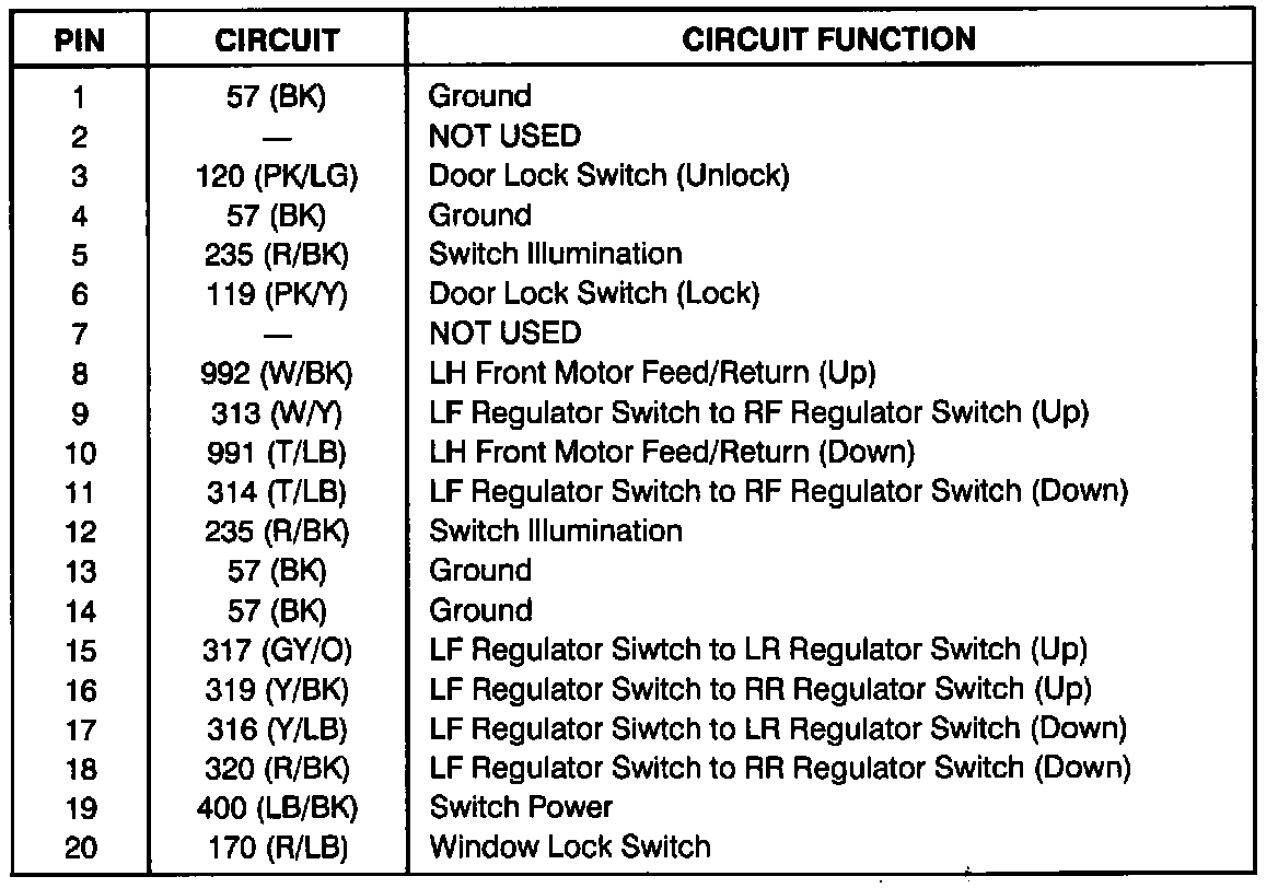 Master Window Control Switch - 4 Door (Part 2 Of 2):