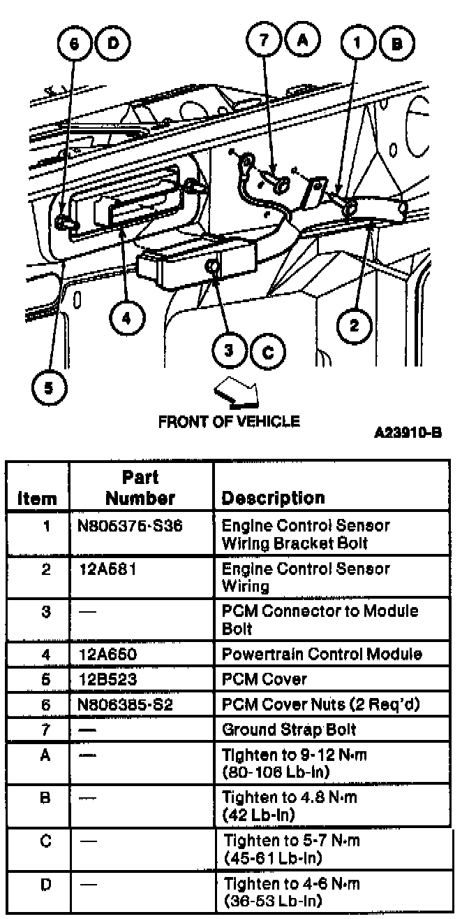 2. Tighten PCM connector to module bolt to 5-7 Nm (45-61 lb in).