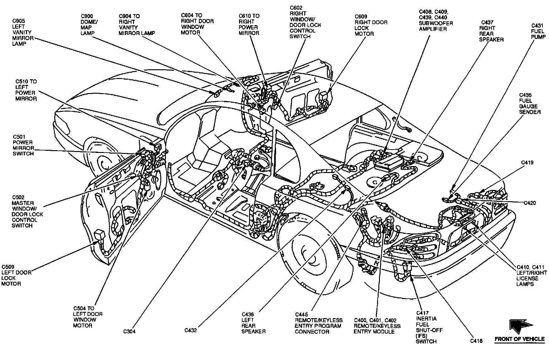 The Remote/Keyless Entry Program Connector is located at the LH rear of trunk, behind side trim.