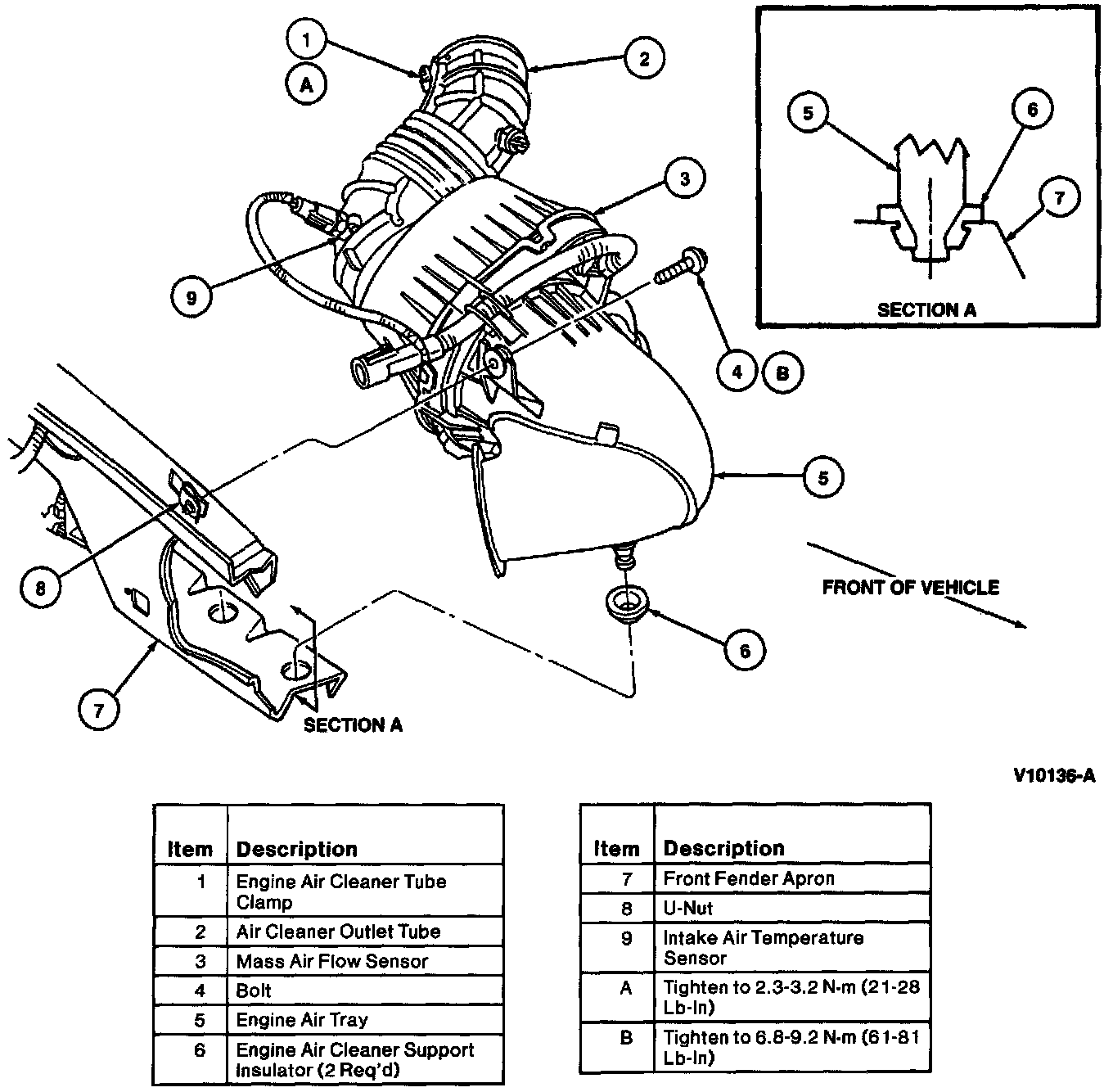 3. Loosen engine air cleaner tube clamps on air cleaner outlet tube. Disconnect air cleaner outlet tube from MAF sensor.