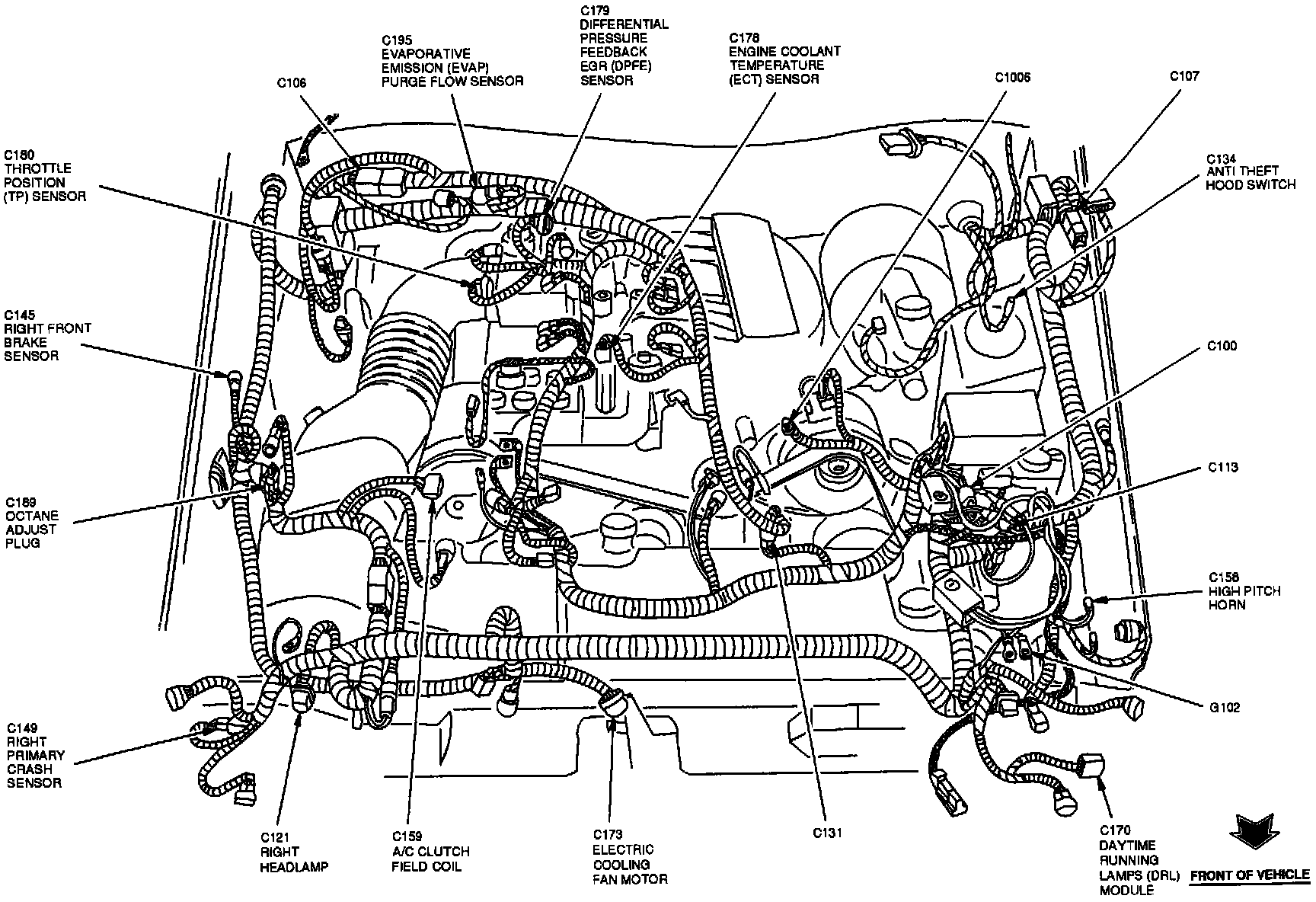 The Throttle Position Sensor is located at the top rear of the engine, on throttle body.