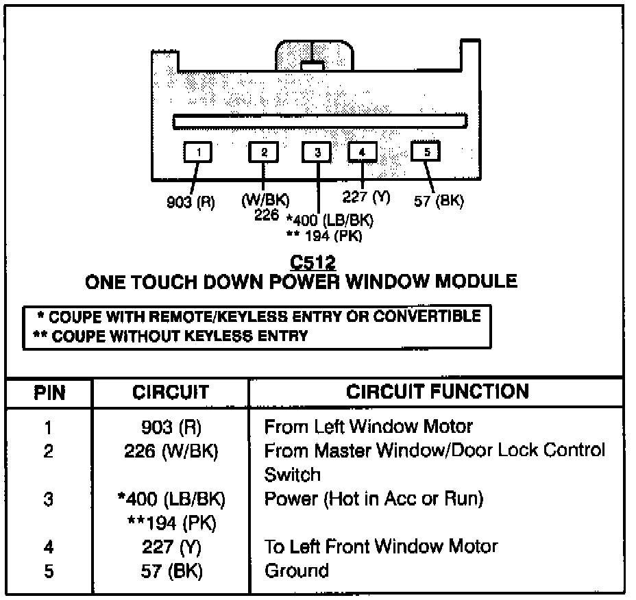 Power Window Control Module: Diagrams