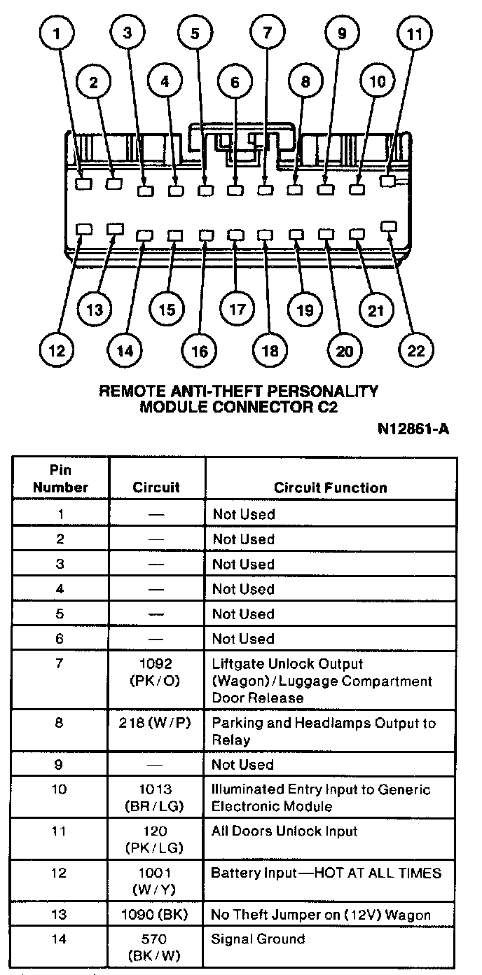 Remote Anti-Theft Personality Module Connector C2 Part 1 Of 2: